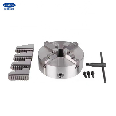 Pełna nazwa czteroszczękowego samocentrującego uchwytu to ręczny czteroszczękowy samocentrujący uchwyt do obrabiarek.Składa się z korpusu dysku, czterech małych spiralnych zębów i pary szczęk.Cztery małe spiralne zęby są połączone z drutem cewki, tył drutu cewki jest płaską strukturą gwintu, a pazury są równomiernie zainstalowane na płaskim gwincie.Kiedy mały, spiralny ząb zostanie pociągnięty kluczem, cewka się obraca, a płaski gwint na jego grzbiecie powoduje, że szczęki jednocześnie zbliżają się lub cofają do środka.Ponieważ skoki płaskich prostokątnych gwintów na zwiniętym drucie są równe, odległości ruchu czterech pazurów są równe, co ma funkcję automatycznego centrowania.